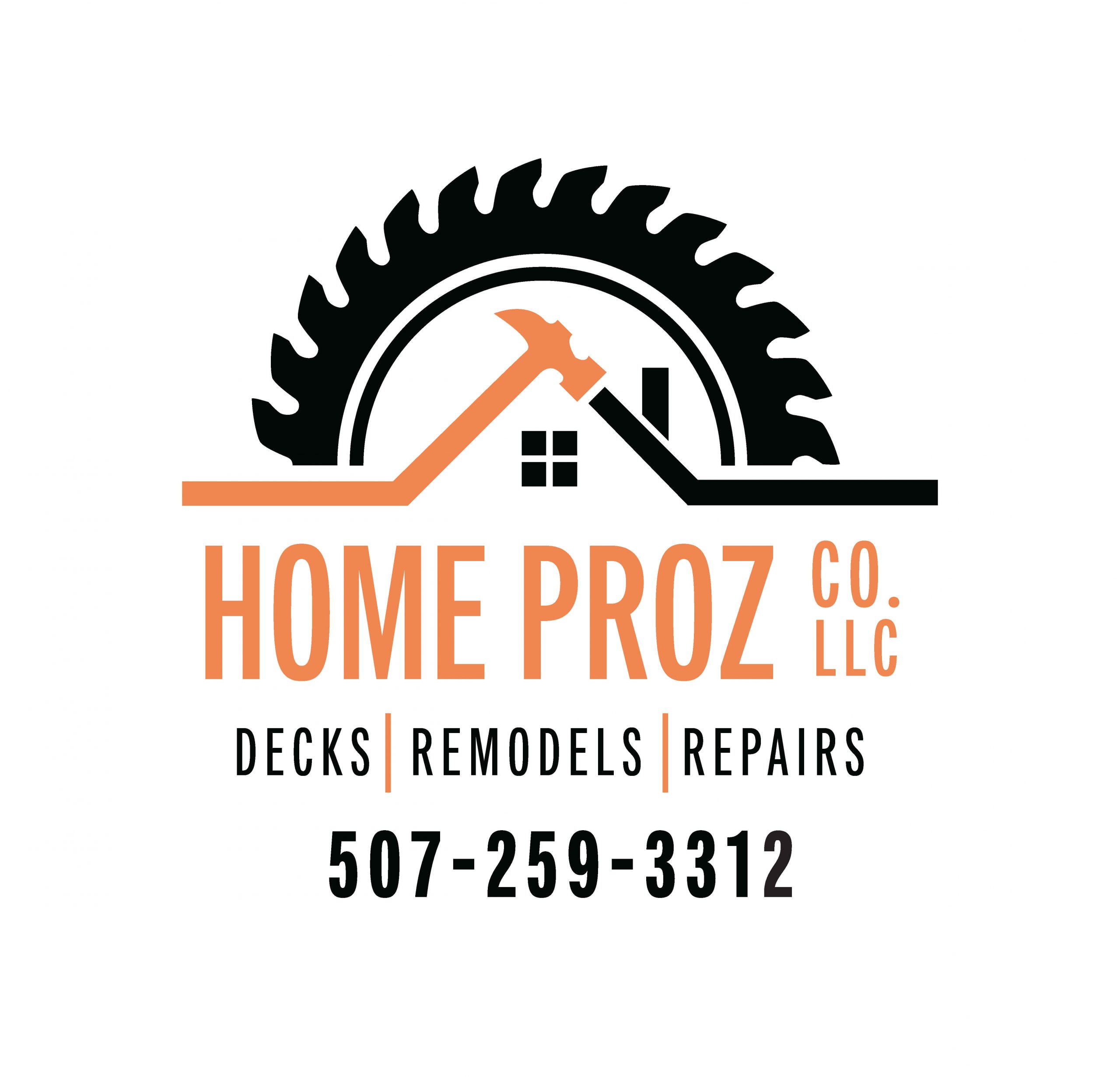 Home Proz specializes in new construction, remodels, decks, minor skid loader work, junk removal by dump trailer, and handyman services.